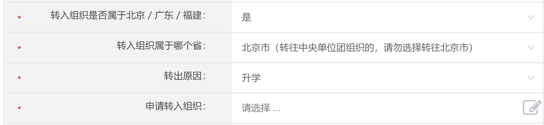 第xx团支部”后选择。注册时,请团员输入真实准确的姓名和身份证号,否则会影响团组织关系的成功转接。所在地选择海淀区-北太平庄街道办事处-师范大学社区居委会,团组织需输入新生团支部全称,本科生最高学历为“高中”,硕士生最高学历为“本科”。 5. 等待团组织在系统上进行转入审核。团组织通过后,团员手机端显示“所属组织→我的团组织→中国共产主义青年团91吃瓜
