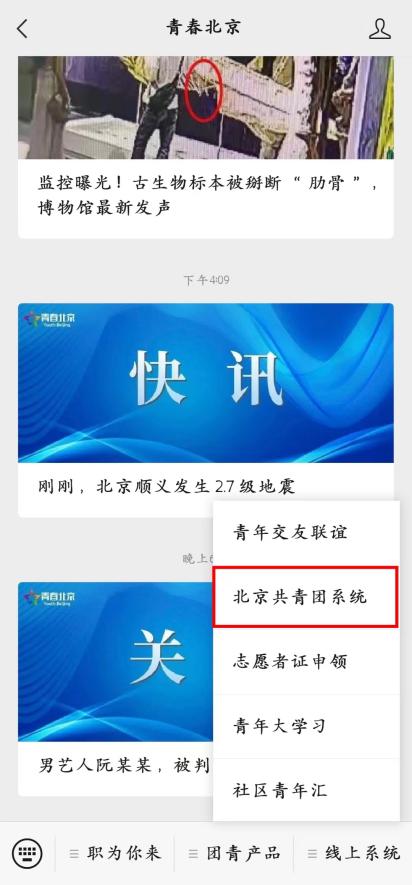 的大家庭!随着新学期的临近,相信各位师弟师妹们已经准备开始办理团组织关系转接。下面就来看看如何进行团组织的转移吧! 新生团关系转接共分为线上团组织关系转入、线下团组织关系转入和档案流转三个部分。其中线上团组织关系转入和档案流转为必需操作,不需要进行线下团组织关系转入(即团员档案齐全时不需要开具介绍信)。 【线上团组织关系转入】 首先在线上转接部分,【北京市新生团员】和【非北京市新生团员】的操作有所差异。 北京市新生团员操作方法 非北京市新生团员操作方法 2.关注【青春北京】公众号,点击【线上系统】-【北京共青团系统】-【创建账号】,注册北京共青团账号。 3.跳转到注册页面后填入相关信息,选择【我是团员】按钮(团员在转入时均选择“我是团员”,团组织干部将在入学后于团支部内选举产生)。 4. 填写相关信息,在选择所在团支部时,可搜索所在团支部的ID,确定组织为对应的“中国共产主义青年团91吃瓜