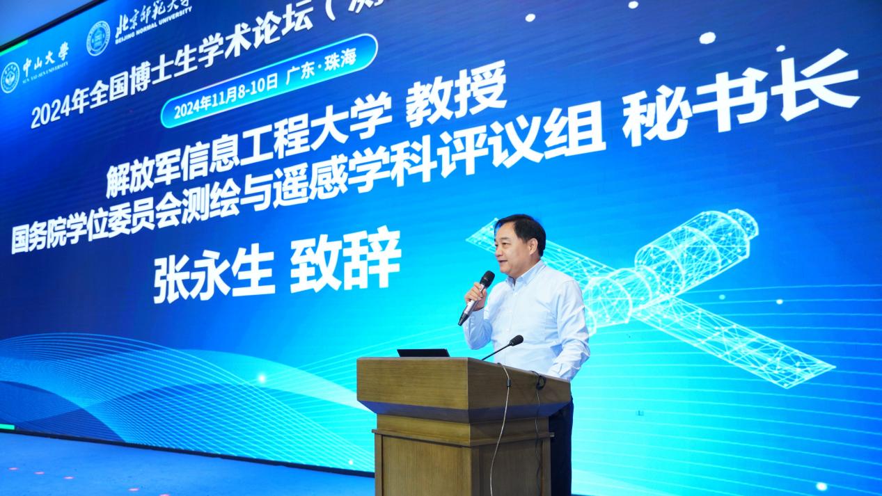 国务院学位委员会测绘与遥感学科评议组秘书长、解放军信息工程大学张永生教授代表学科评议组致辞表示,多学科交叉融合是学科发展的大趋势和内生力量,希望同学们在此次论坛中加强学术交流,启迪学术感悟,取得理论和技术的双重收获。