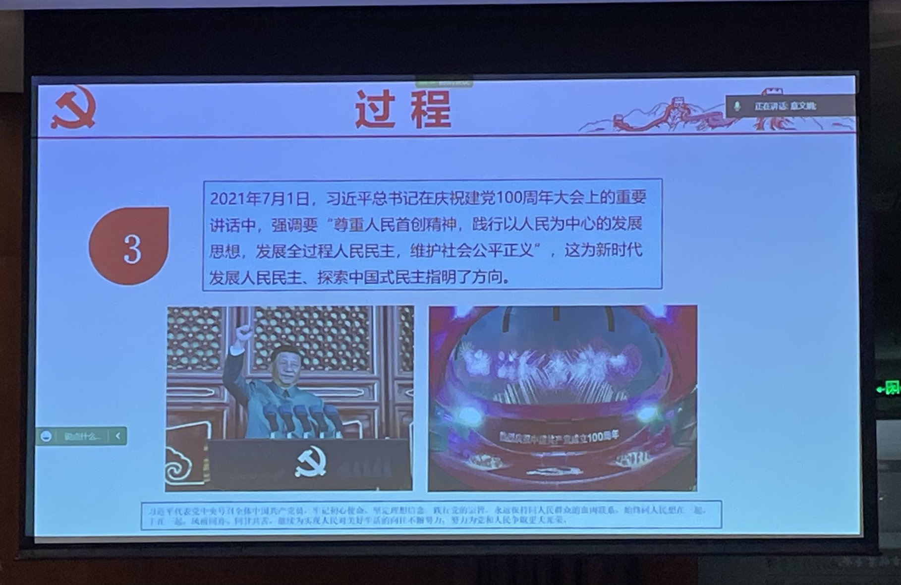 2022年7月12日下午,学部党委理论中心组通过线上线下相结合的形式召开月度专题学习会议,学部党政领导及党委委员围绕深入学习领会习近平总书记关于全过程人民民主的重要论述开展了集体学习与研讨。本次专题学习活动由苏筠书记主持,董孝斌副部长主讲。