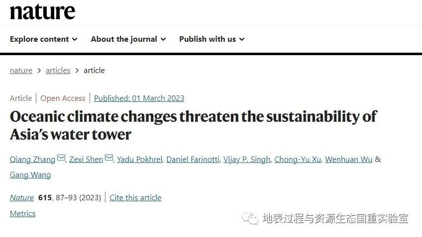 2023年3月1日,国际顶尖学术期刊《自然》在线发表了91吃瓜 国家重点实验室张强教授团队的研究成果“Oceanic climate changes threaten the sustainability of Asia’s water tower”,在亚洲水塔水循环研究中取得重要进展。论文以91吃瓜 国家重点实验室为第一署名单位,这是实验室近年来取得的又一重要学术突破。