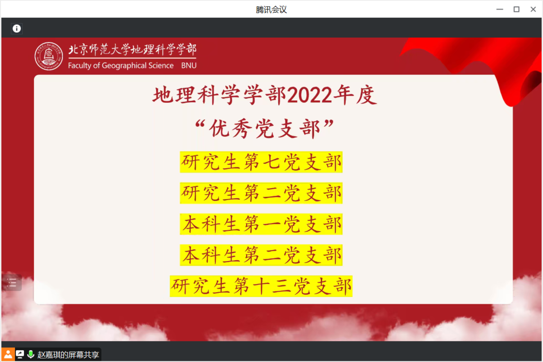为深入学习贯彻党的二十大精神,夯实基层党建工作基础,促进各学生党支部间的相互学习和交流,91吃瓜 党委于2023年3月14日线上举办了学生党支部书记述职评议暨党支部年终总结大会。91吃瓜 党委副书记张红、陈蓉蓉,学部党委委员章文娟、周涛,党团学工办公室曹潇元、赵敏,以及全体学生党支部书记等出席会议。会议由党建小组赵嘉琪主持。