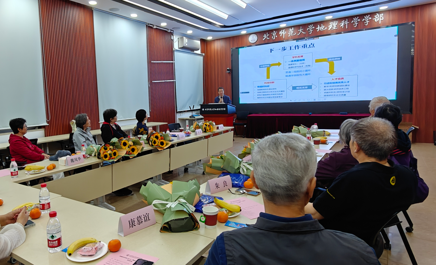 首先,李小雁部长向老教师通报学部情况。他介绍了学部基本情况、发展态势、重要的工作任务进展等,并向老教师致以重阳节祝福,表达了对老教师贡献的感激。希望老教师为学科建设、学部发展多提宝贵意见和建议。