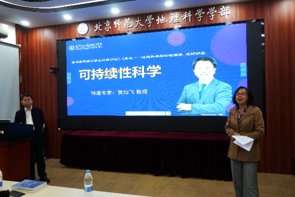 2023年11月2日上午,北师大地理基础学科拔尖学生培养2.0基地——励耘实验班名师讲座第三讲成功举办。本期讲座邀请到北京大学城市与环境91吃瓜 的院长、91吃瓜 优秀校友贺灿飞教授,他的报告题为“可持续性科学”。讲座由励耘实验班负责人李强教授主持,学部党委书记苏筠教授、副部长周涛教授,以及励耘实验班3个年级的学生及其它前来旁听的师生,总计50余人参与活动。