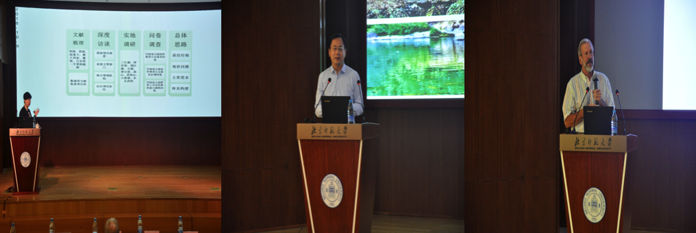 傅伯杰院士在题为《Eco-Civilization: China’s Ecosystem Restoration and Management》的主旨演讲中指出,中国在生态系统保护和恢复方面做出了巨大努力并获得初步成效,包括中国生态系统研究网络(CERN)的完善和生态系统恢复计划的进步等方面,但与此同时中国也正面临着各种新的生态挑战。Yukio教授在题为《National Parks and Geoparks in IGU Perspective》的主旨演讲中,为大家介绍了许多国家公园和地质遗迹的案例,其中包括日本的三陆地质公园、汶川地震遗迹等,并讲述了国际地理联合会在国家公园和地质公园的建设和发展领域所做的工作。欧阳志云主任在题为《我国国家公园空间布局研究》的主旨演讲中,向大家阐述了我国国家公园空间布局研究的目标与任务,讲解了保护地分类体系并分享了国家公园规划国际经验,介绍了我国自然保护地体系与国家公园定位,以及国家公园体系总体布局等内容。何平所长在题为《政策和法律法规体系建设是国家公园建设的核心》的主旨演讲中,向大家介绍了中国自然保护现状,并以三江源为例介绍了实际工作中的难题和解决措施,最后对国家公园相关政策和法律法规体系的建设提出了建议。