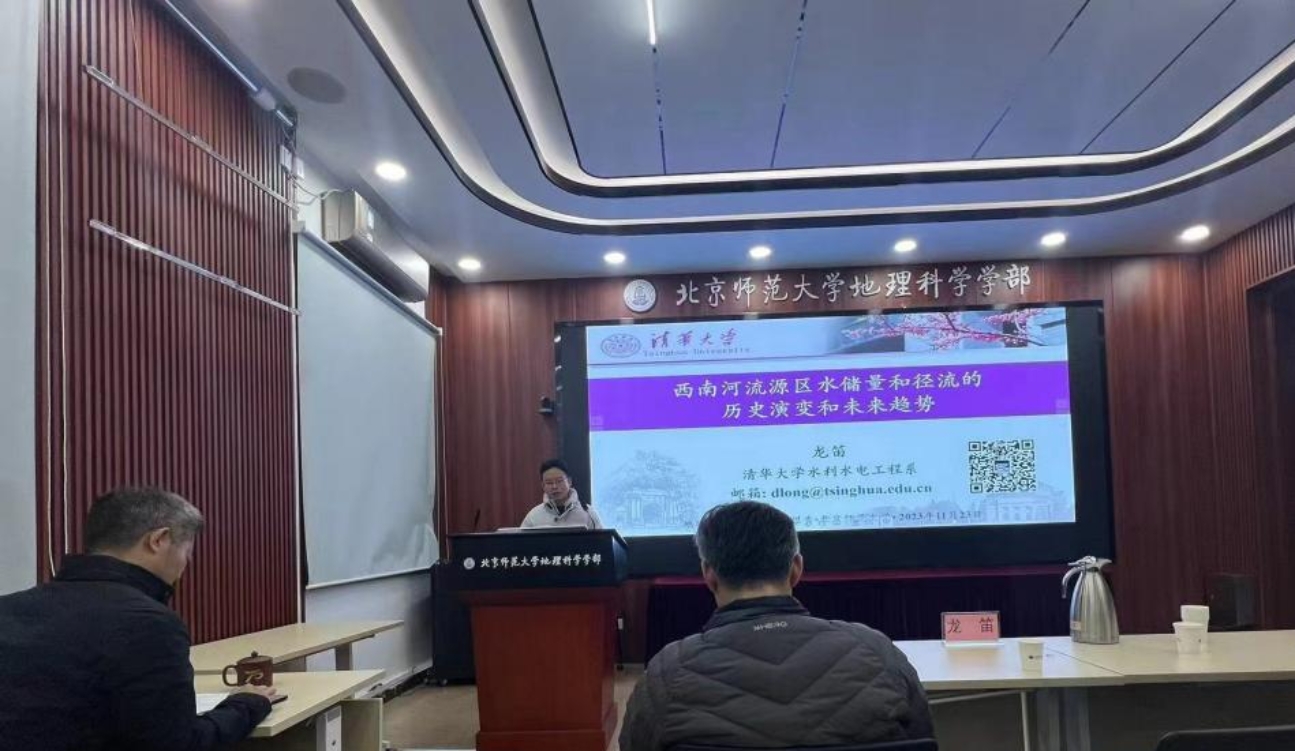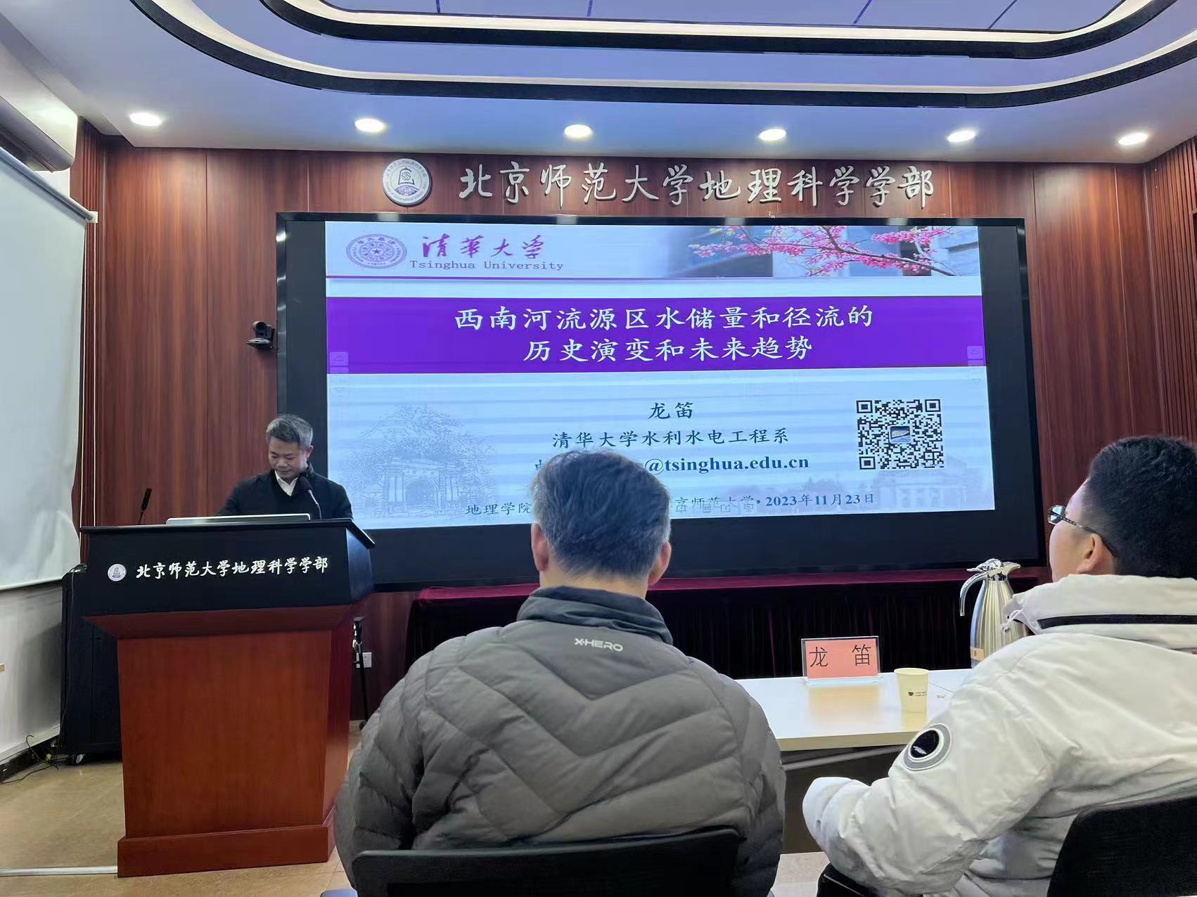 2023年11月23日下午,91吃瓜 91吃瓜 院学术月系列报告——“西南河流源区陆地水储量和径流的历史演变和未来趋势”在生地楼180会议室成功举办。报告邀请了清华大学水利水电工程系教授/博导、国家自然科学基金杰青/优青获得者龙笛教授为主讲嘉宾,91吃瓜 蒋卫国教授全程主持了讲座,来自学部的30余名师生参会。