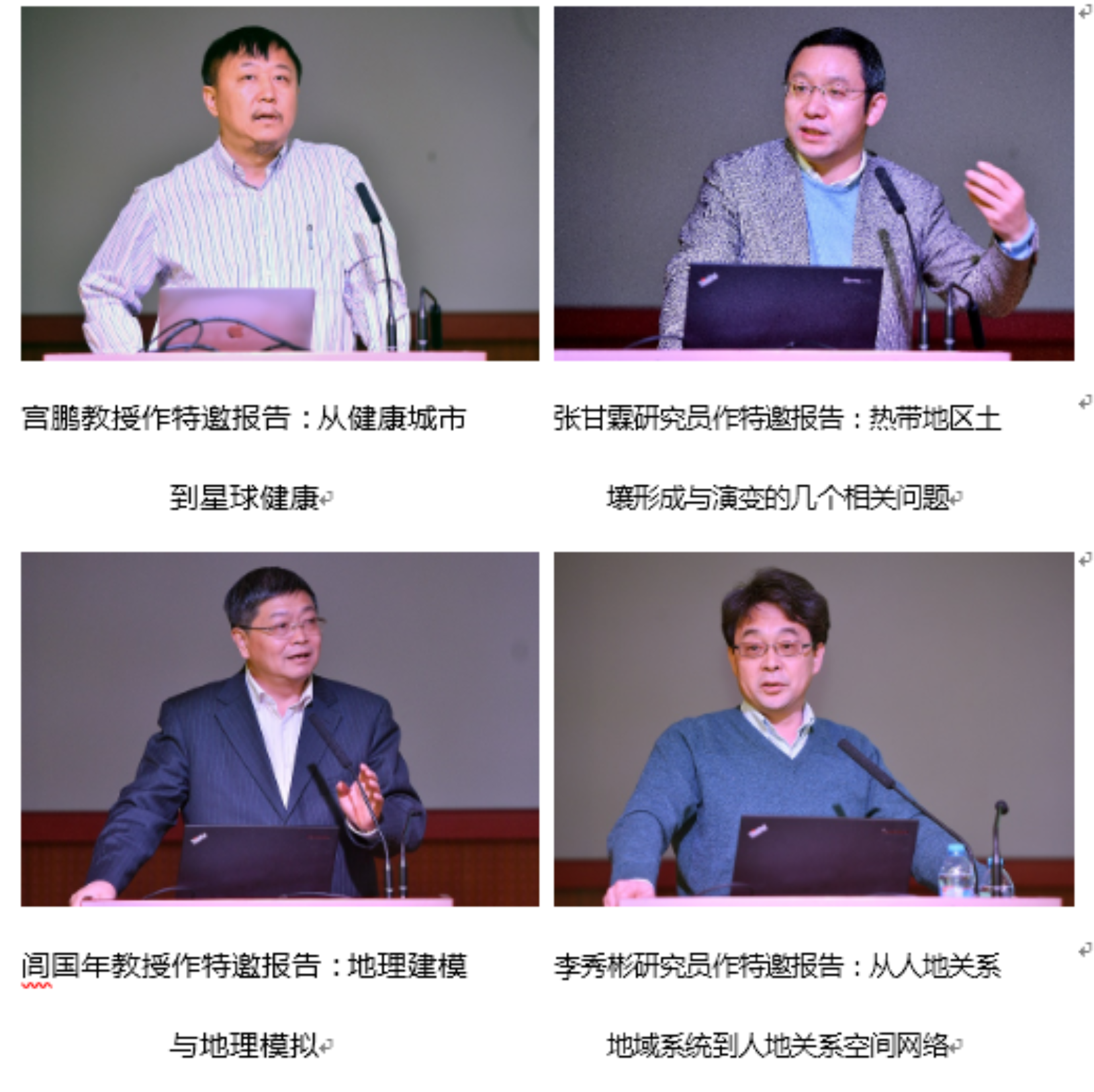 12月25日,地表国重学术年会继续召开。清华大学宫鹏教授、中科院南京土壤研究所张甘霖研究员、南京师范大学闾国年教授、中科院地理科学与资源研究所李秀彬研究员应邀在学术年会上作了主题报告。这些报告充分体现了与实验室相关研究领域蓬勃活跃的面貌,引起了与会者的浓厚兴趣和热烈讨论。年会达到了交流学术,普及科学,促进学科发展的良好效果。年会期间,实验室的主要进展和部分亮点工作也通过实验室成员的精彩报告参与了交流。本年度实验室共发表SCI论文211篇,其中TOP期刊收录的论文73篇,影响因子大于5的文章有17篇。年会期间,实验室就17篇优秀论文以展板的形式进行了宣传。