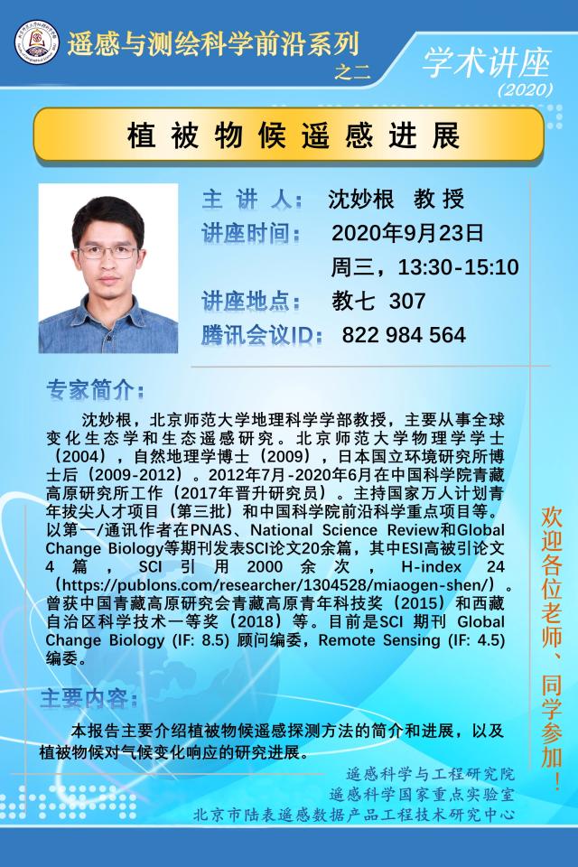 【9月23日讲座】沈妙根,植被物候遥感进展
