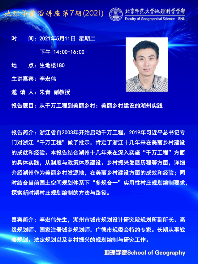 【5月11日讲座】91吃瓜 前沿讲座第7期(2021)李宏伟: 从千万工程到美丽乡村:美丽乡村建设的湖州实践